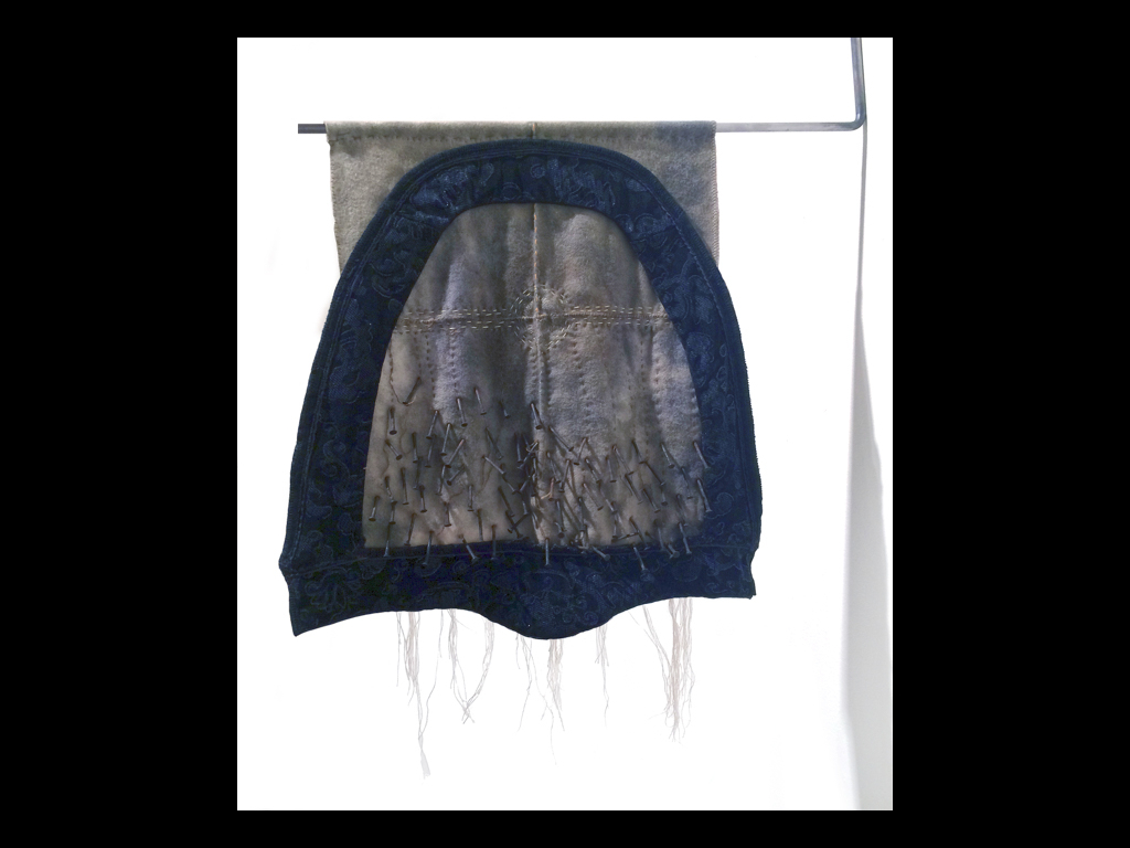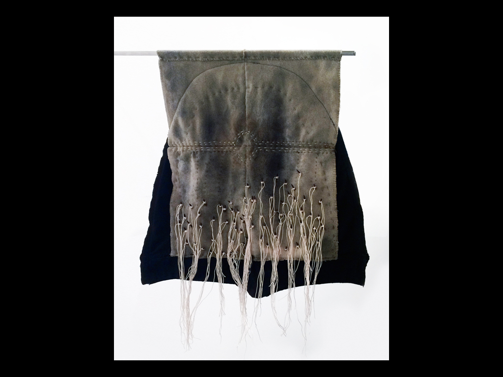 Une démarche qui consiste à redonner vie à de vieux tissus oubliés comme aux différentes parties de soi qui demandent d’être reconnus et acceptés. Ces vêtements sont ensuite marqués en laissant une empreinte, une trace léguée et enrichie par des plantes et des minéraux.