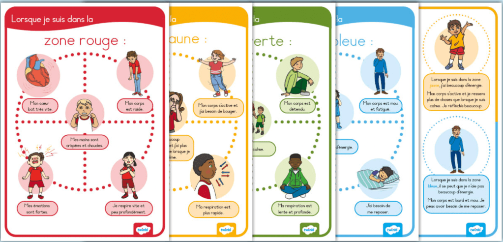 - Identifier le ressenti corporel : Aider l’enfant à localiser où il ressent une émotion ou une tension (ex: “J’ai un nœud dans le ventre”).